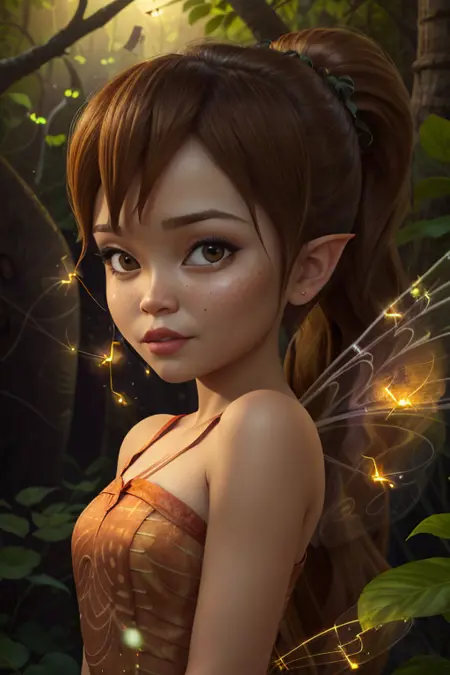 I trained with 262 images, about 1/3 with full body images 2/3 closeups from all angles. For the training I mainly used screenshots from the Tinkebell Movies and a few pictures from the internet. For people wondering her look was changed in the last TinkerBell movie "Tinker Bell and the Legend of the NeverBeast". Have her look completely based on the last movie in this LoRA.