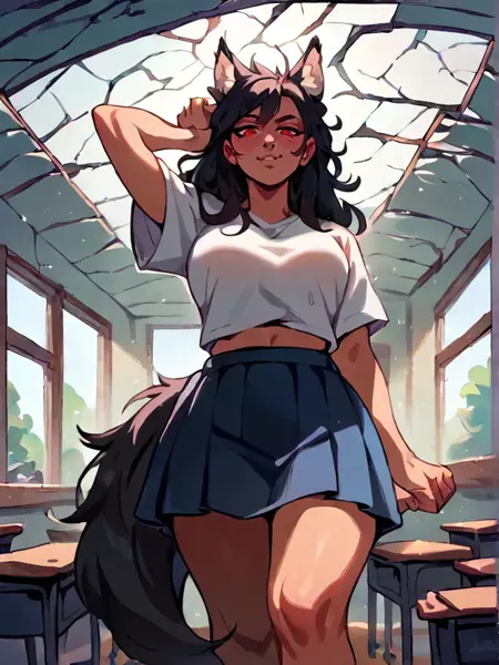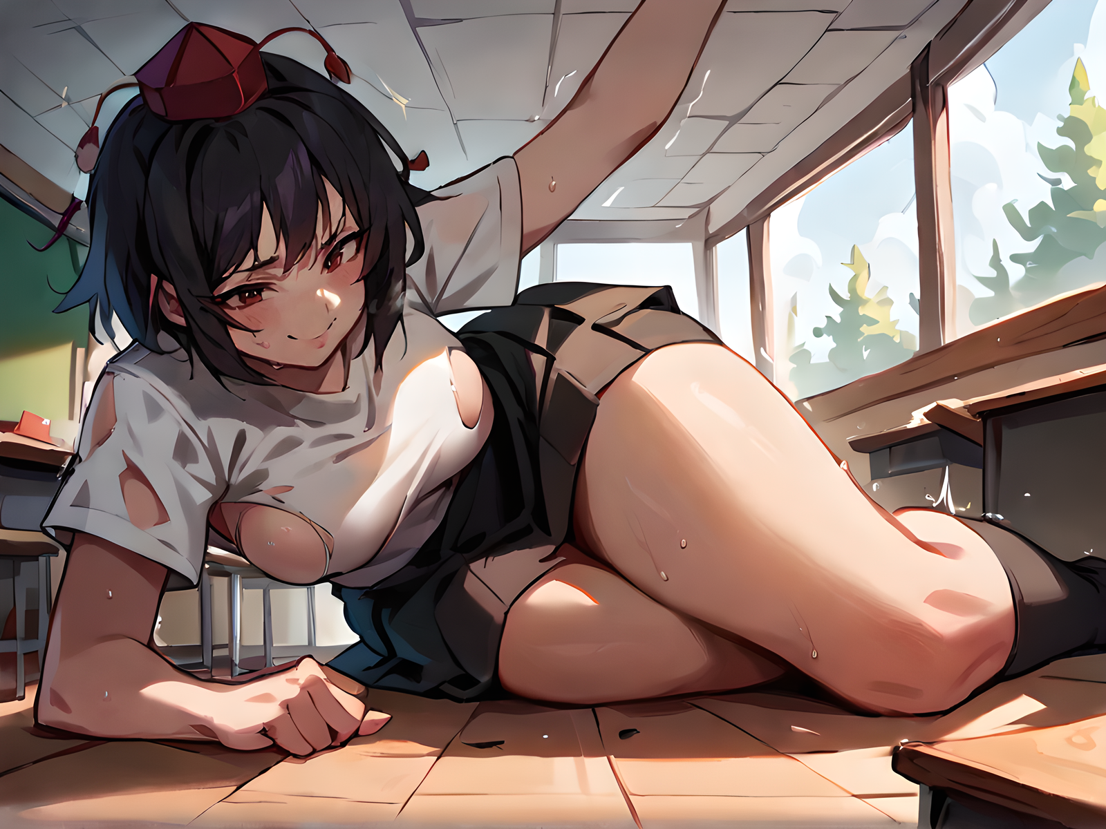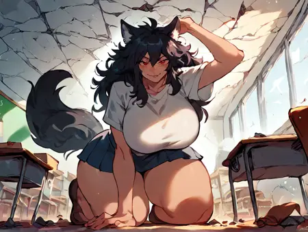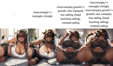如果角色正在变大,使用触发词 growth;若要表现一般的“拥挤感”,使用 cramped。推荐添加的元素包括:trembling, motion lines, head touching ceiling, cracked ceiling, torn clothes。