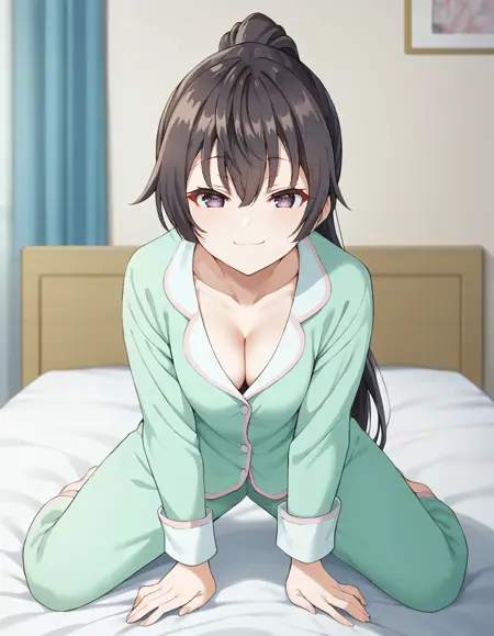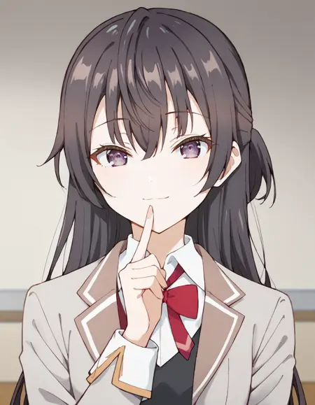 <lora:yuki_suou-roshidere_s1-ixl-anime-soralz:1>, yuki suou (roshidere), black hair, long hair, ponytail, hair between eyes, purple eyes
