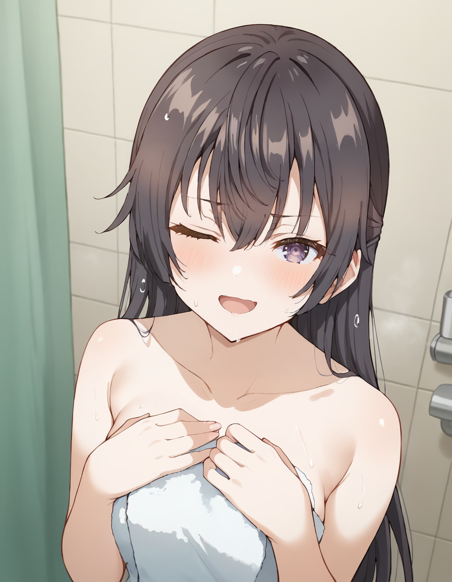 <lora:yuki_suou-roshidere_s1-ixl-anime-soralz:1>, yuki suou (roshidere), 黑发, 长发, 半扎发, 发丝遮眼, 紫色眼睛