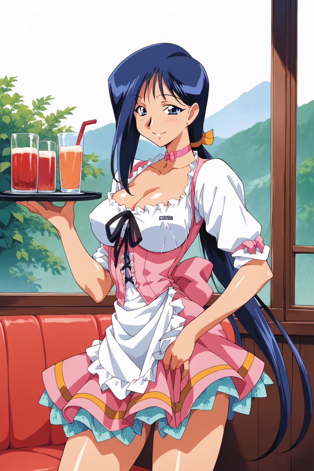 トリガーワード:saki viper、ウェイトレス、チョーカー、青髪、ロングヘアー、青い目