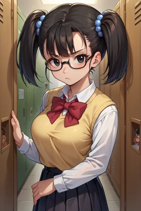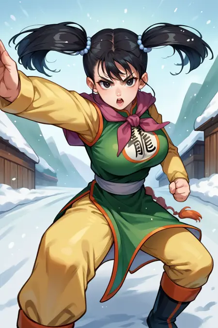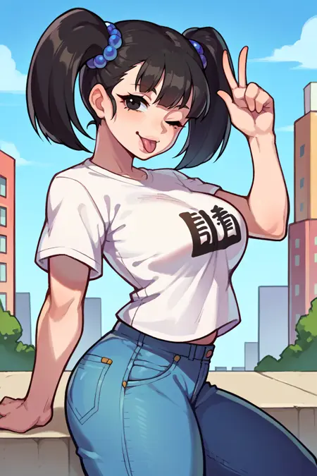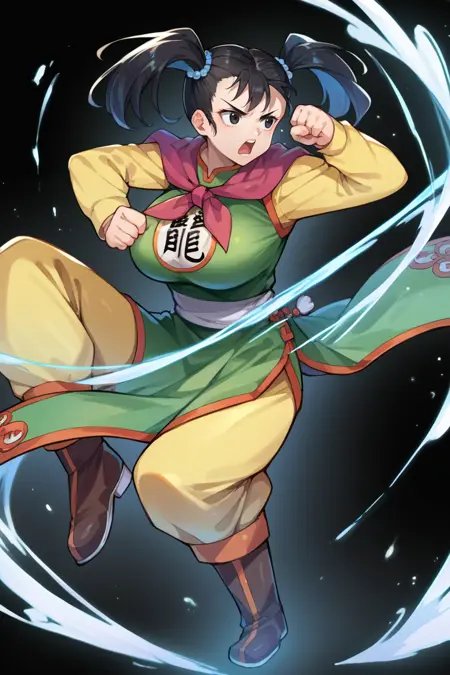 Trigger word is "dq3fighter" and "black hair, twintails, black eyes" is required.