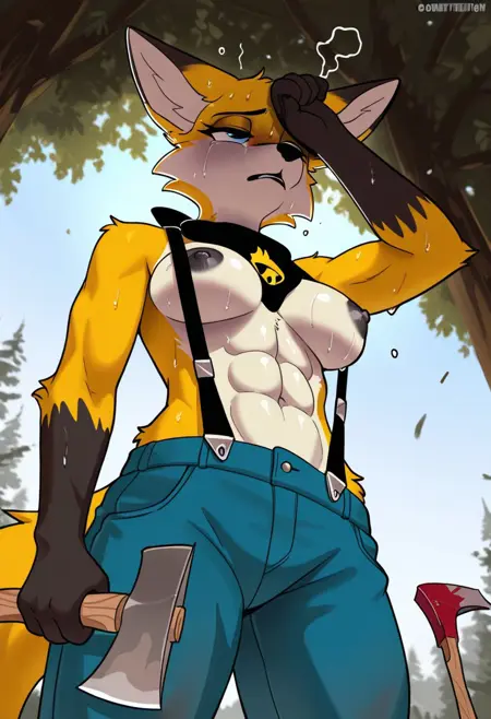 役立つタグ: 黄色い毛並み、カウンターシェーディング、手袋(模様)、靴下(模様)、黒いバンダナ、首回りのバンダナ