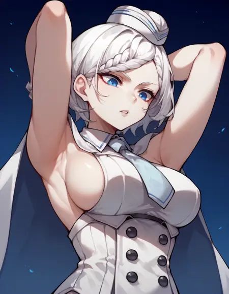 짧은 머리, 하얀 머리, 땋은 앞머리, 군모,