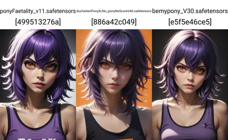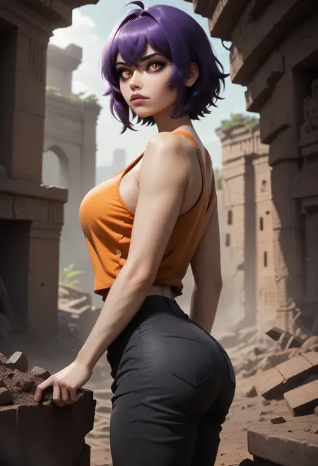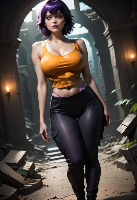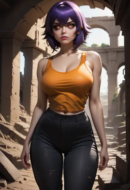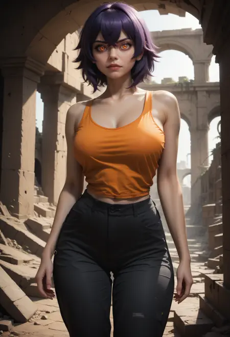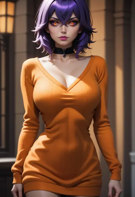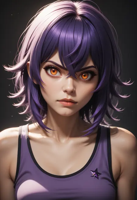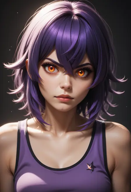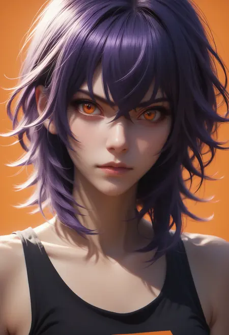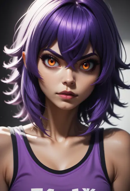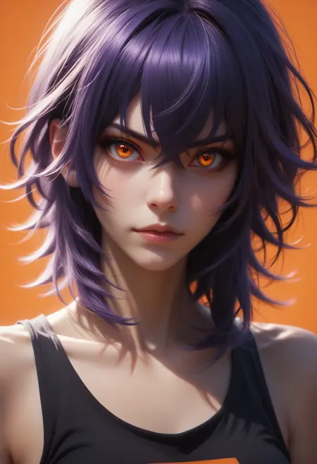 主: d4rk4m3thyst, 紫色の髪, オレンジの目,
