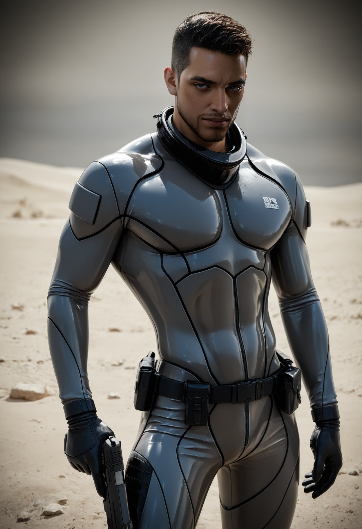 1girl, solo, colorful, glowing, eyes, realistic, bodysuit, safe