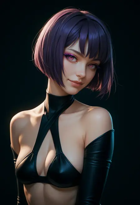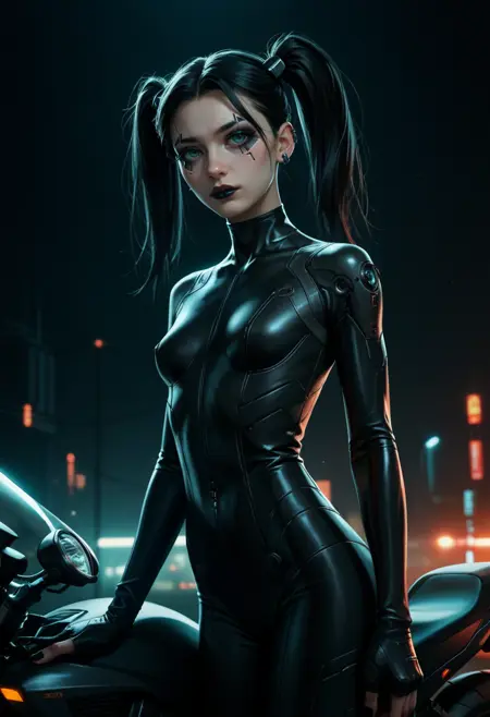 1girl, solo, colorful, glowing, eyes, realistic, bodysuit, safe