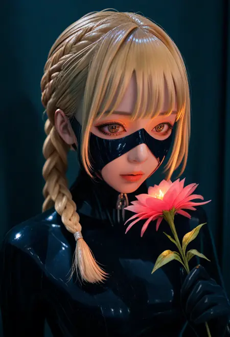 1girl, solo, colorful, glowing, eyes, realistic, bodysuit, safe