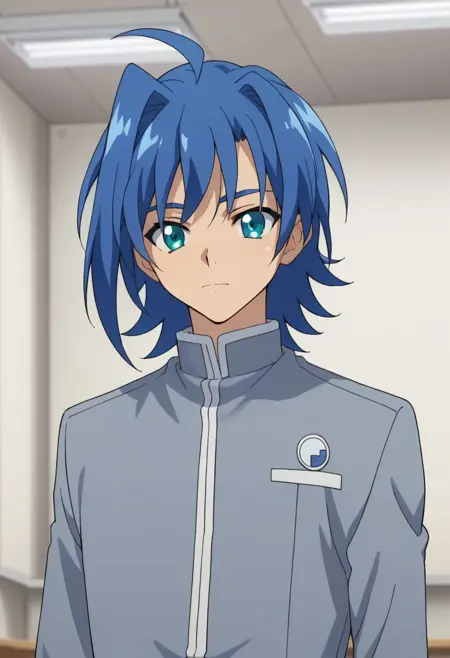학교 #1 - 아이치, 1남아, 남성 중심, 파란 머리, 파란 눈, 아호게, 학교 유니폼, 회색 유니폼,