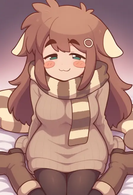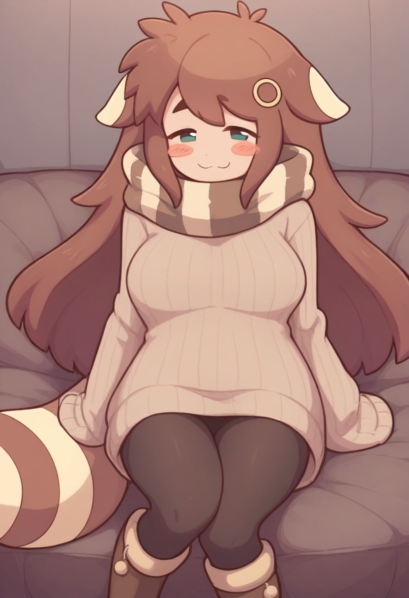 辅助标签:浣熊尾巴、动物耳朵、长发、棕色头发,