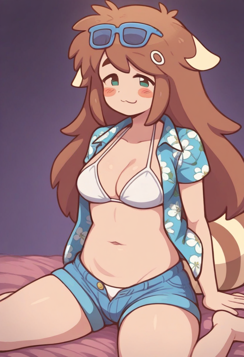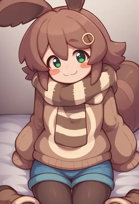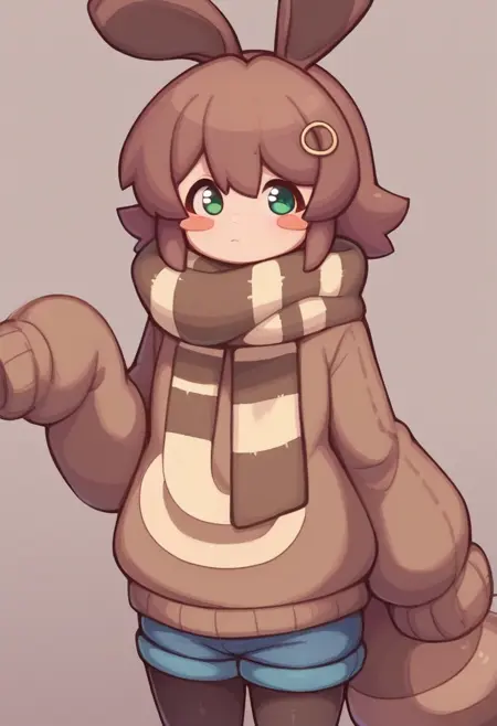 辅助标签:浣熊尾巴、动物耳朵、长耳、棕色头发、短发,