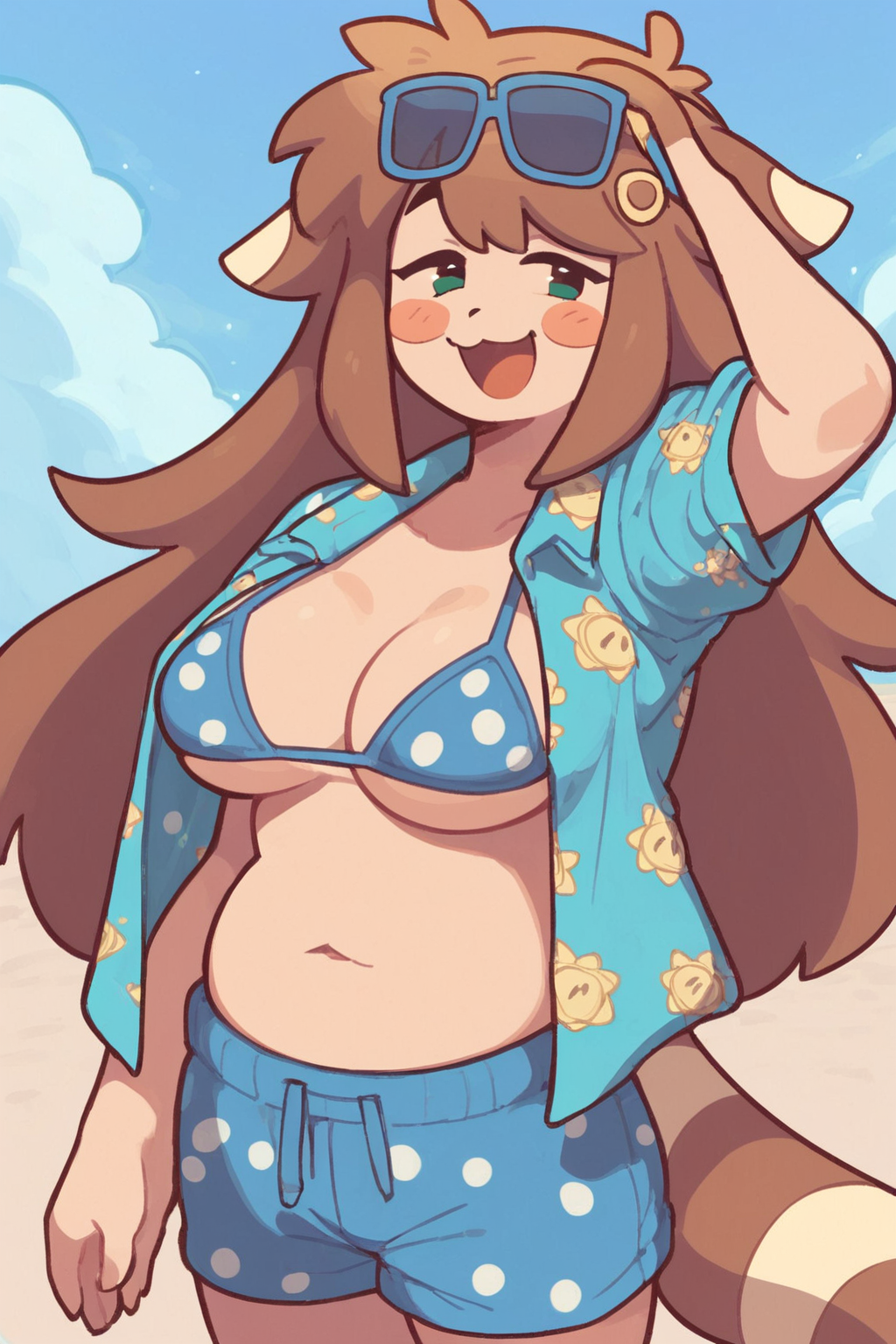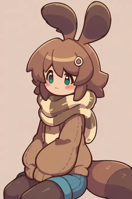 Tag that can help : raccoon tail, animal ears, long ears, brown hair, short hair,