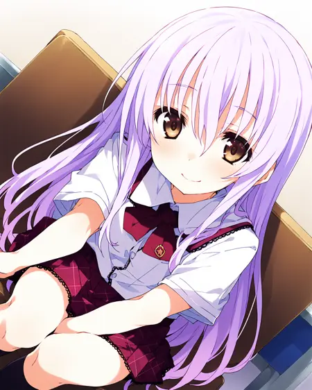 基础形象tag:solo,1girl,lilac_hair,hair between eyes,very_long_hair,brown eyes,