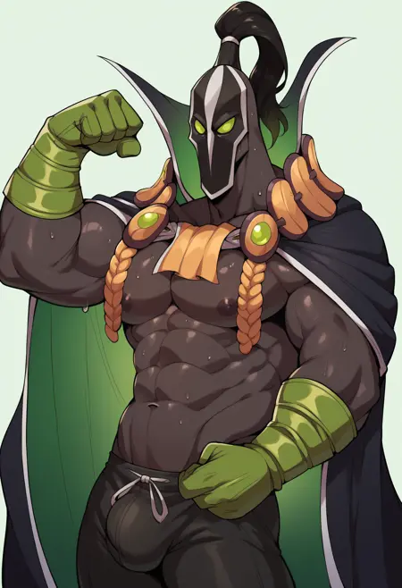 권장 태그: 파이테일, 망토, 녹색 눈, 어깨 갑옷, 장갑, 녹색 장갑