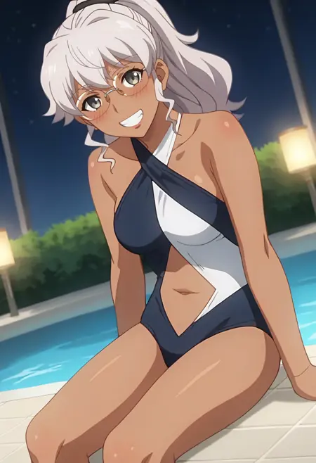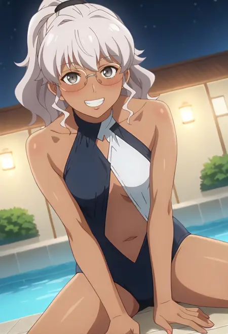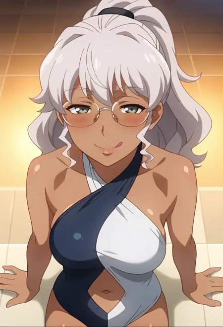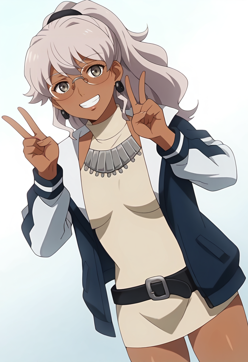 naomimr, グレーの目, ポニーテール, メガネ,
