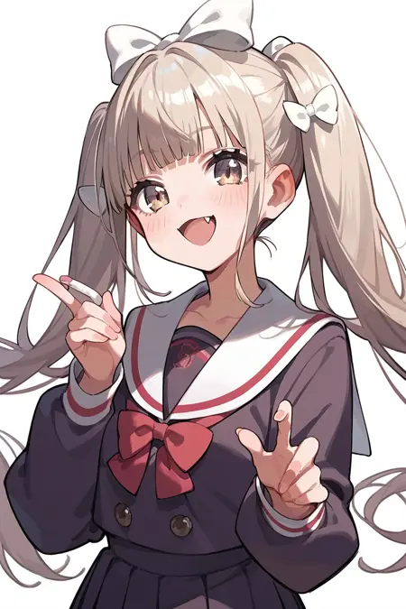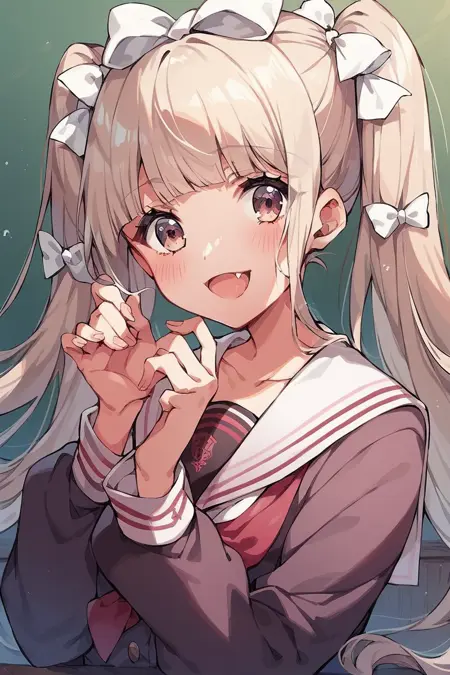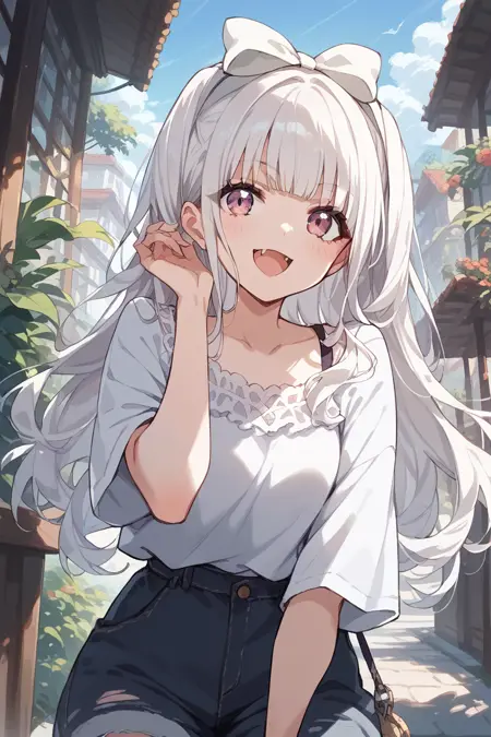 Kurumi와 1girl을 사용. 다양한 옷을 원한다면 샘플 이미지의 프롬프트를 참고. 긴 머리, 머리 리본, 앞머리, 헤어스타일용 흰 리본. 모두 잘 작동. 헨타이에도 적합.