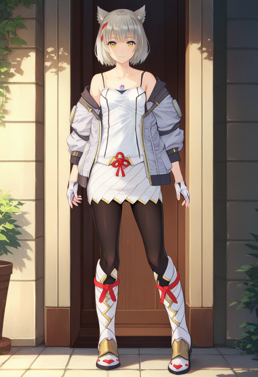 zephyr,背心,银色夹克,白色条纹裙,黑色连裤袜,及膝靴,半指手套