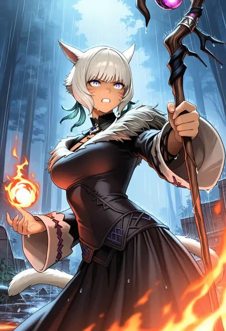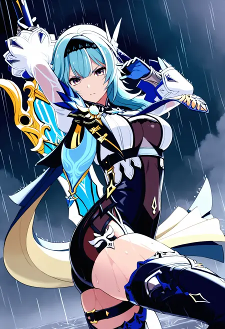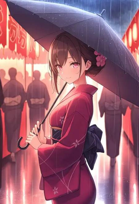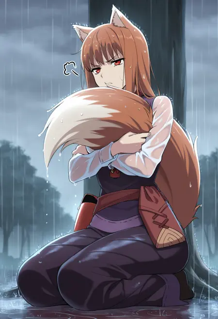 雨を強化するためのConcept LoRA。ポニーは雨の本質をよく理解しているが、屋根の下の雨や十分に濡れていない服、そして曇った空の下で空気感が明るすぎることに時々混乱する。