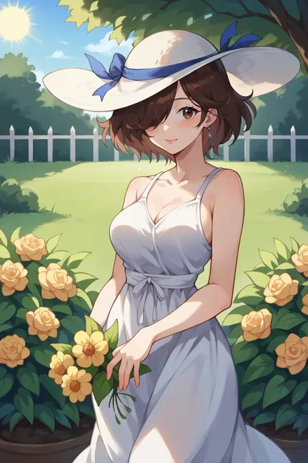 트리거 단어는 "otThrn"이며, "갈색 머리, 단발, 한쪽 눈 위의 머리카락"이 필수입니다.