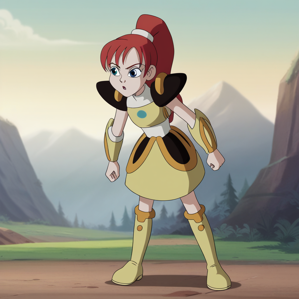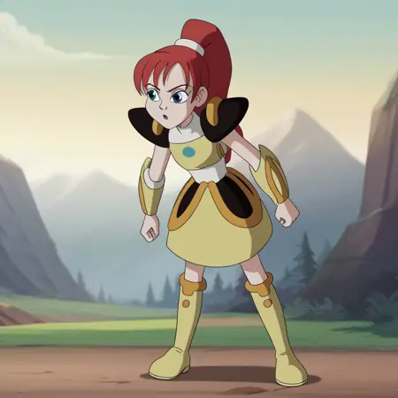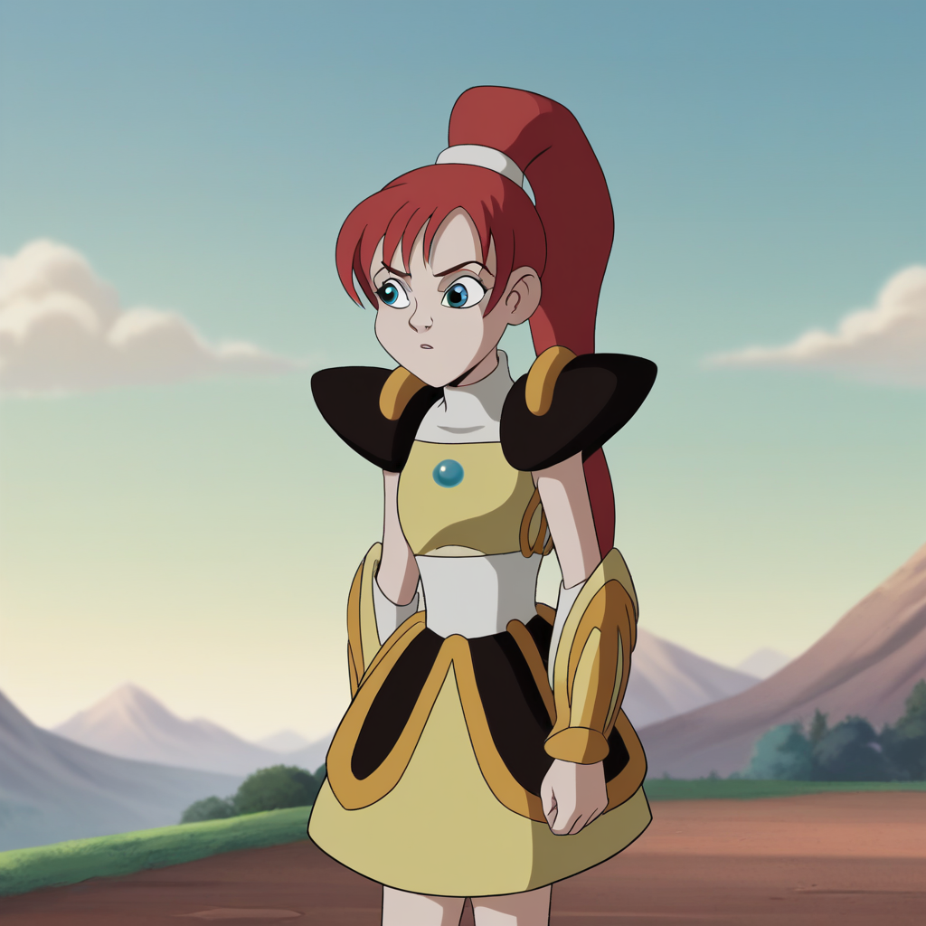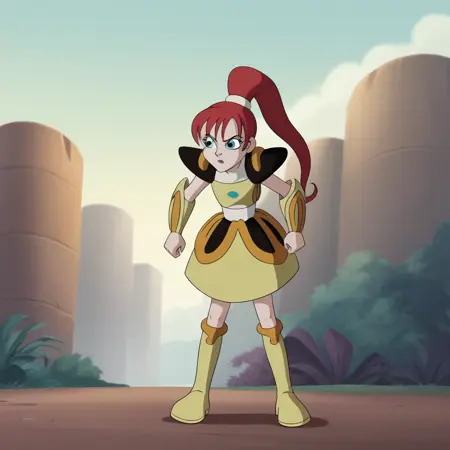 PrincessSherbet, 1girl, solo, red hair, ponytail, high ponytail, blue eyes,
