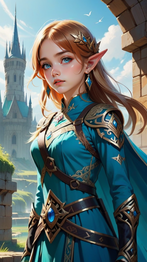 EXAMPLE: Portrait, Zelda, adult, cute, seductive, innocent, light smile:0.3, plump lips, slender body, ankle-length pink dress, jeweled tiara, golden shoulder pads, a gold chain as a necklace, vibrant, fantasy, epic, heroic, cave background, depth of field, dynamic angle, fashion photography, sharp, hyperdetailed:1.15, 4n1v3rs3