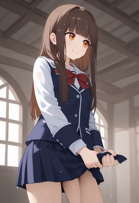 急な雨や海、川に入るなどスカートが濡れてしまったから絞るLoRAです。