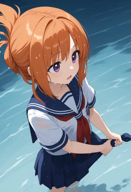 The pose can be taken with just the trigger word, but it is better to add standing, wet clothes, wet hair, wet skirt, etc., to give the impression of wetness and emotion.
