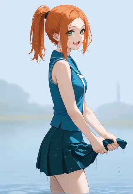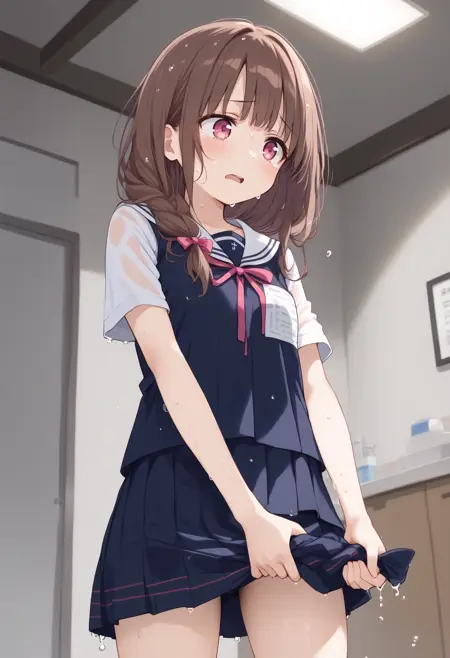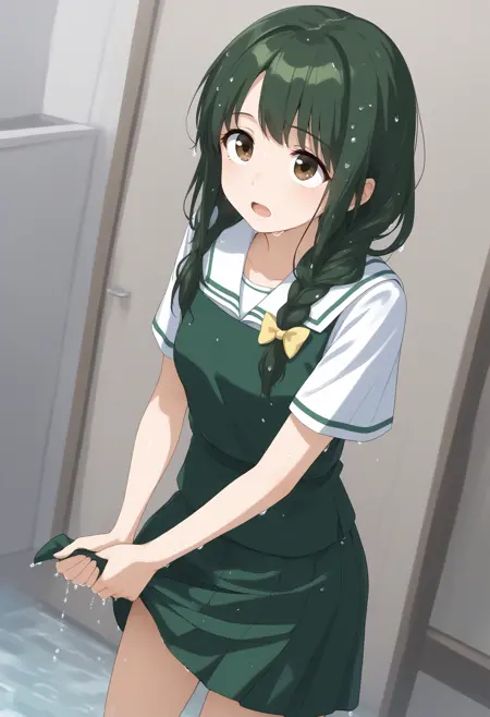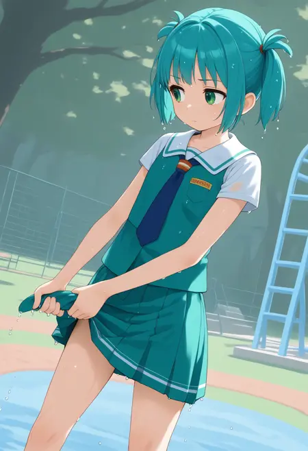 急な雨や海、川に入るなどスカートが濡れてしまったから絞るLoRAです。
