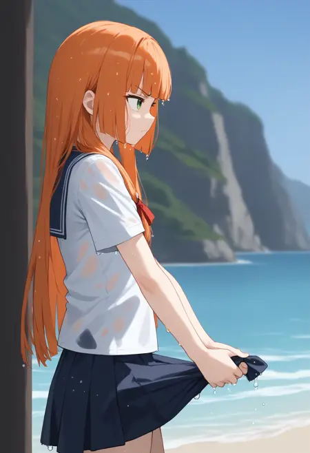 The pose can be taken with just the trigger word, but it is better to add standing, wet clothes, wet hair, wet skirt, etc., to give the impression of wetness and emotion.