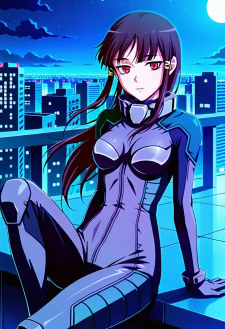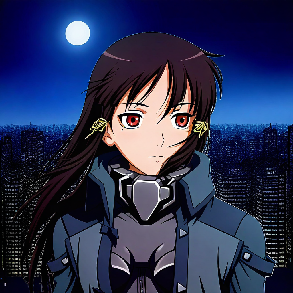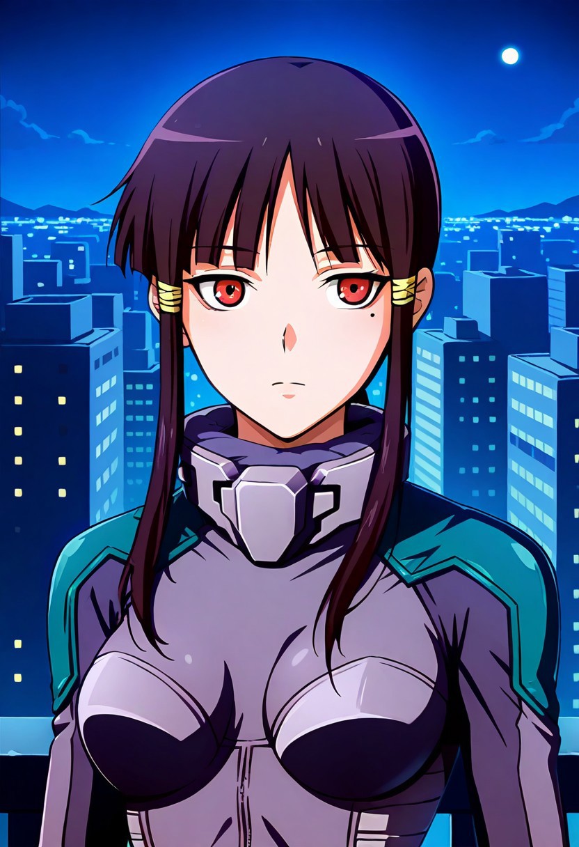xiayufan、女性、赤い目、左目下のほくろ、バンドでまとめた長い髪