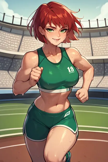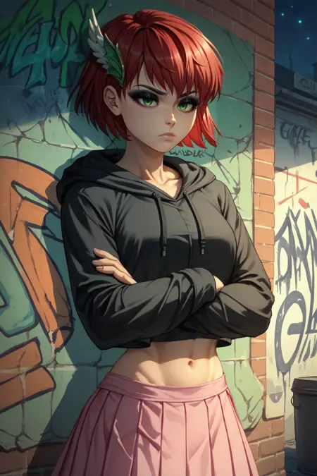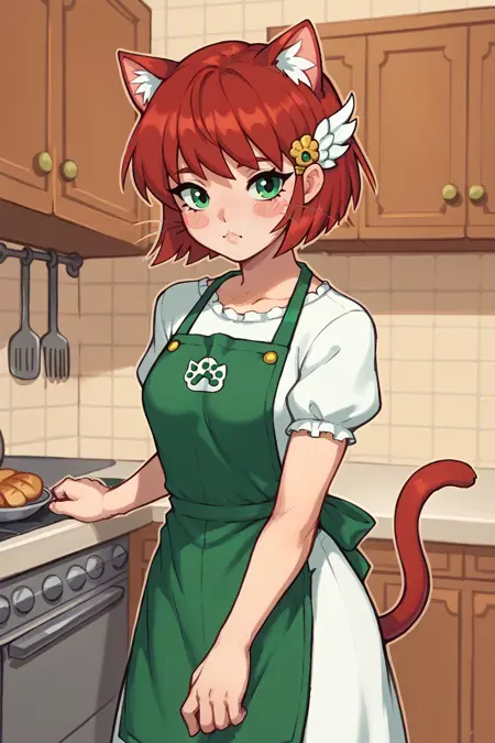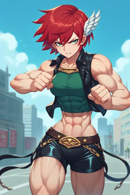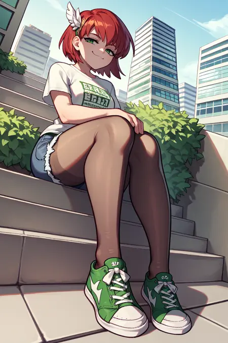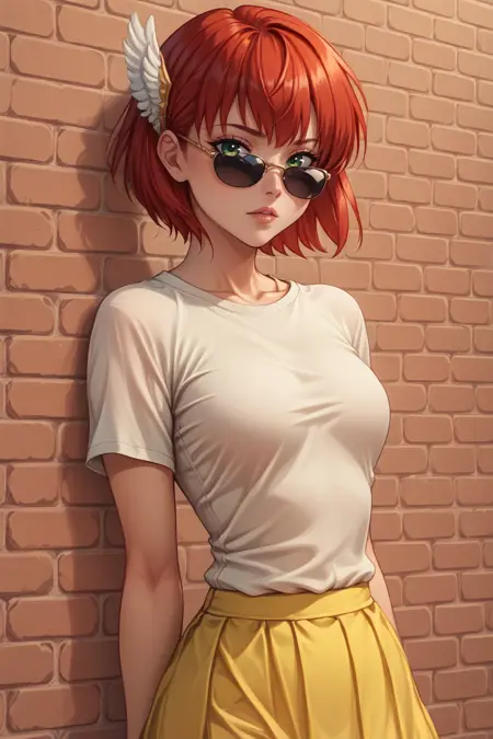 Main Prompts: NSPriscillaFE7, red hair, green eyes, short hair, wing hair ornament