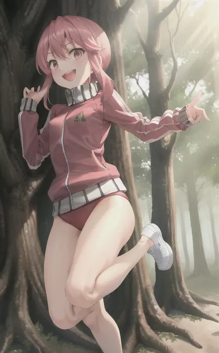 スポーツウェアには (jakuzure nonon), (track jacket), (red buruma), (pink soft hat) を使用してください