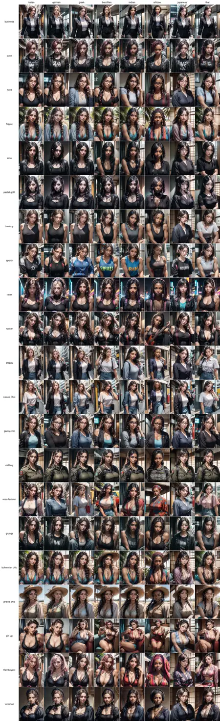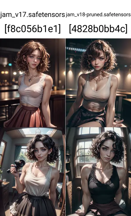 2D와 현실적인 요소 사이를 오가며, 버전마다 조금씩 완전히 달라집니다. 병합 모델은 약간의 노출 및 큰 가슴에 치우쳐 있지만 여전히 다목적으로 사용 가능합니다. (예시 이미지 참조)