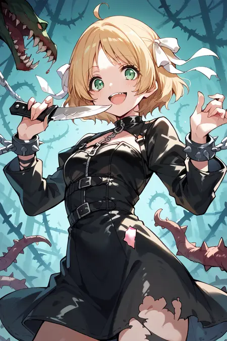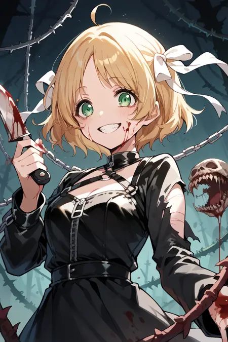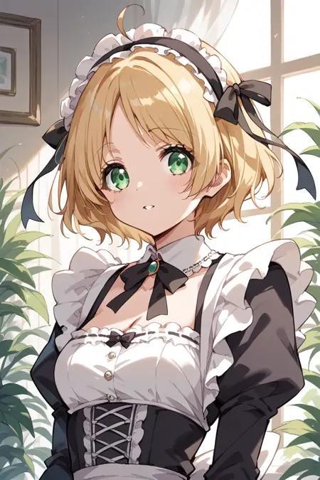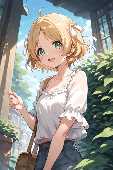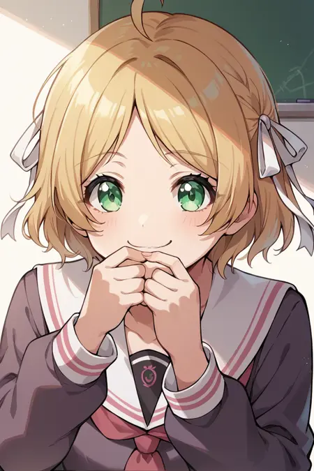 Miiko와 1girl을 사용. 다양한 옷을 원한다면 샘플 이미지의 프롬프트를 참고. 헤어스타일은 금발, 단발, 리본, 머리 리본, 아호게. 모든 요소가 잘 작동. 헨타이에도 적합.
