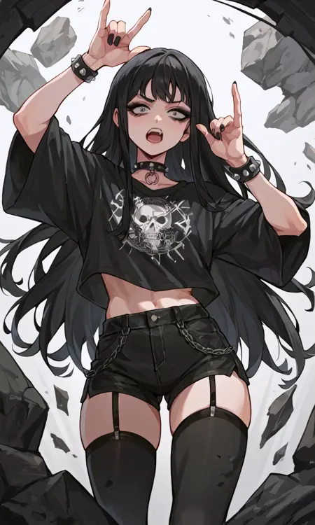 주 프롬프트: 폰리 퀄리티 태그 + hornGesture + \n/ 또는 \m/ 중 하나 사용.