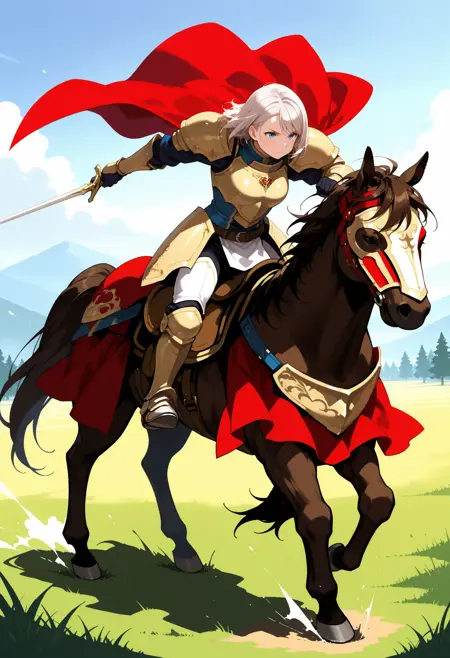 옵션 단어: 기사, 갑옷, 망토, 장갑, 헬멧, 검 들고 있음, 창 들고 있음