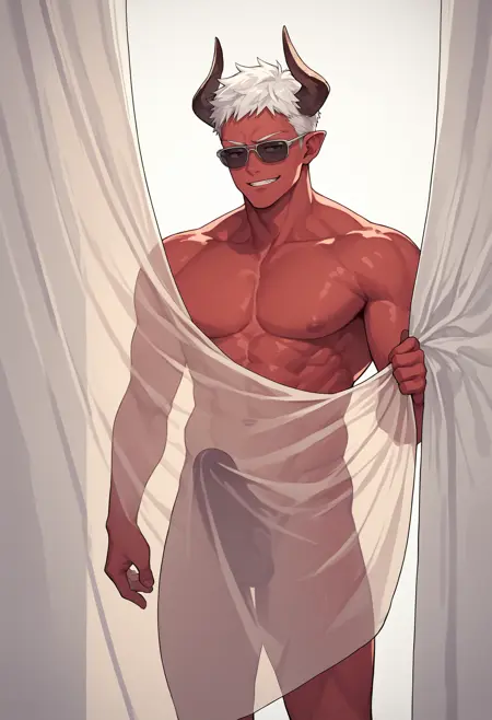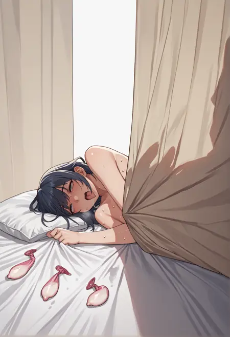 主に、裸の体をカーテンで覆った画像で訓練しました。キャラクターの服や衣装のLoRAを使用しようとすると、カーテンが体全体を覆えなくなる可能性があります。裸のタグや適切な衣装タグがないと、カーテンが服として認識されることがあります。