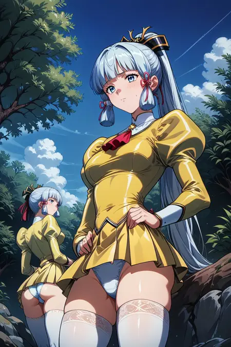 yellow_skirt, yellow_dress, yellow_jacketOther colored Delmo: Other colors might work as well but it's quite hit or miss