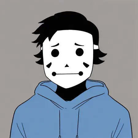 短編アニメ『Mime and Dash』(Derpixon制作)に登場する、マスクを着けたカジュアルな男の子で、青いフード付きパーカーを着ている。