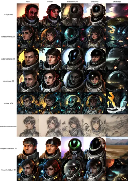 生成時に画像に影響を与えるキーワードとして「starsector」を使用します。すべての例は、非常にシンプルなプロンプトで作成されています。「starsector、________の写真」といった、それ以上のものではありません。
