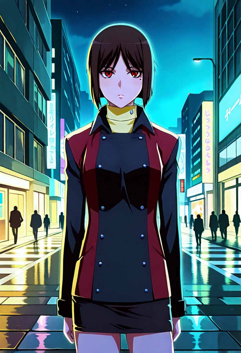 キャラクター:hayuklan、赤い目、ほくろ、短い髪