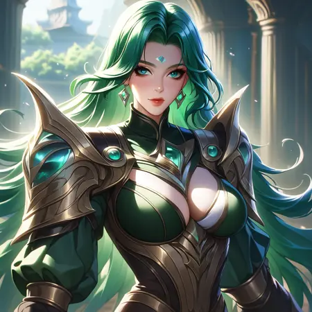 正向提示词:"一位可爱的绿发精灵女孩,身处《英雄联盟》的世界,采用动漫风格,融合幻想艺术与角色设计元素。她拥有美丽的面容、长发,身着皮革,在明亮的背景下呈现游戏艺术风格。肖像具有电影感,光线柔和,焦点清晰,细节丰富,分辨率高,宛如工作室摄影作品。概念艺术风格高度精细,符合 Artstation 热门趋势,具备 3D 渲染质感,unrealstyle"