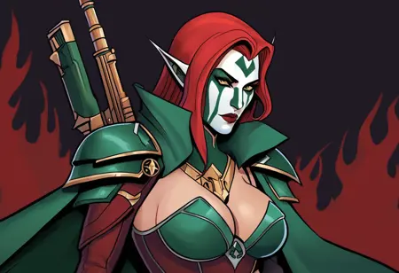 一幅描绘了“殉道圣女修会”圣女与“血鸦战团”太空陆战队员的插画。圣女站在太空陆战队员左侧。她穿着<圣女的描述>。太空陆战队员则<太空陆战队员的描述>。然后默默祈祷。- 标签提示则较难处理。我认为后续数据集版本中我已找到解决方案。目前建议:先输入第一个角色的标签,后接描述该角色的标签;接着输入第二个角色的标签,再接描述其的标签。例如: