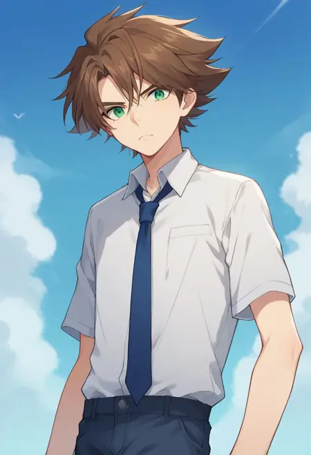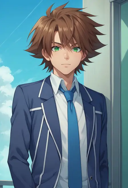 学校 - kai,1个男孩,棕发,绿眼,男性焦点,领结,校服,蓝色领结,西装外套,夹克,衬衫,裤子,腰带