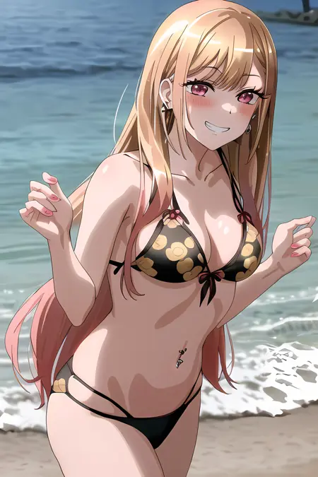 기본적으로는 그녀의 학교 정장과 상징적인 비키니 두 가지에 대해 훈련시켰기 때문에, 태그를 추가하여 출력을 어느 쪽으로 유도할 수 있습니다. 하지만 그 작업을 하지 않으면 때로는 두 가지가 혼합된 결과가 나오기도 해요. 초기에는 귀에 여러 개의 카 بهذا을 강조했지만, 이는 SD가 귀를 제대로 생성하는 데 큰 방해가 되었기 때문에, 지금은 일관되게 귀걸이/귀 뚫기 효과를 얻으려면 반드시 프롬프트에 추가해 주셔야 합니다. 같은 맥락으로, 인공적이고 긴 손톱을 원하신다면 그 역시 프롬프트에 명시해주셔야 해요.