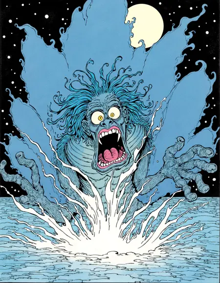 以Gotlib风格绘制的男子阅读报纸时吹气