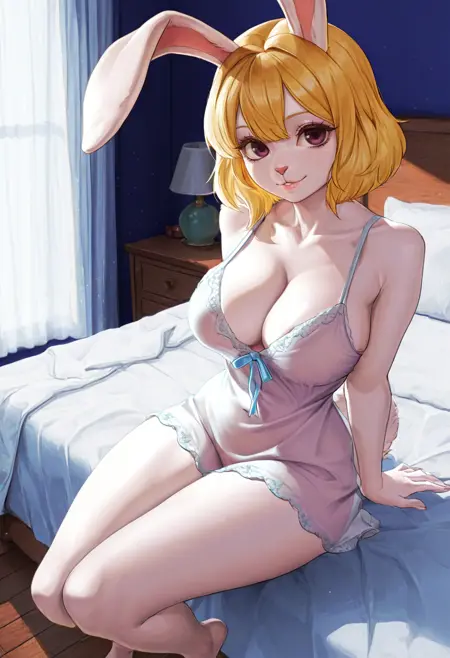 强化标签: 人兽兔、金色短发、白色毛发、棕色眼睛