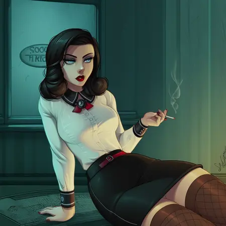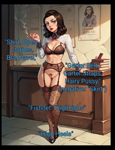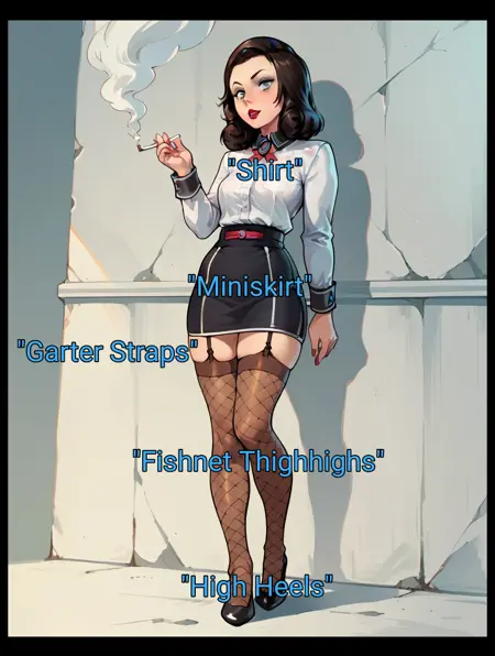適切な衣装トリガー:シャツ、スカート、フィッシュネッツ、ハイヒール