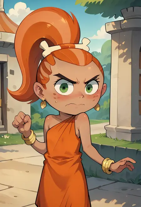 score_9, score_8_up, score_7_up, masterpiece, 1girl, ctianf4ng, earings, bracelet, orange dress, looking at viewer, outdoors,
