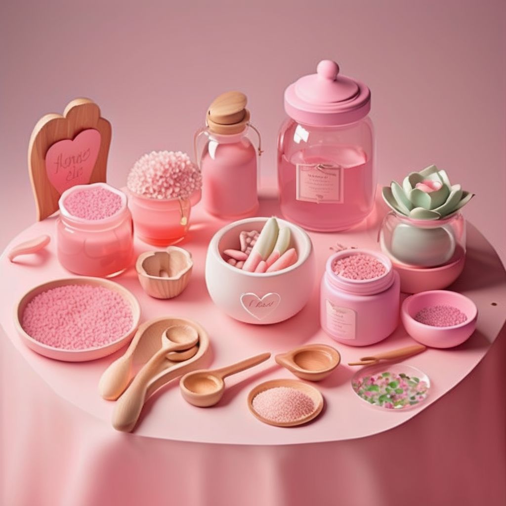 귀여운 형태와 미니어처 같은 아이템을 가진 3D 개체.